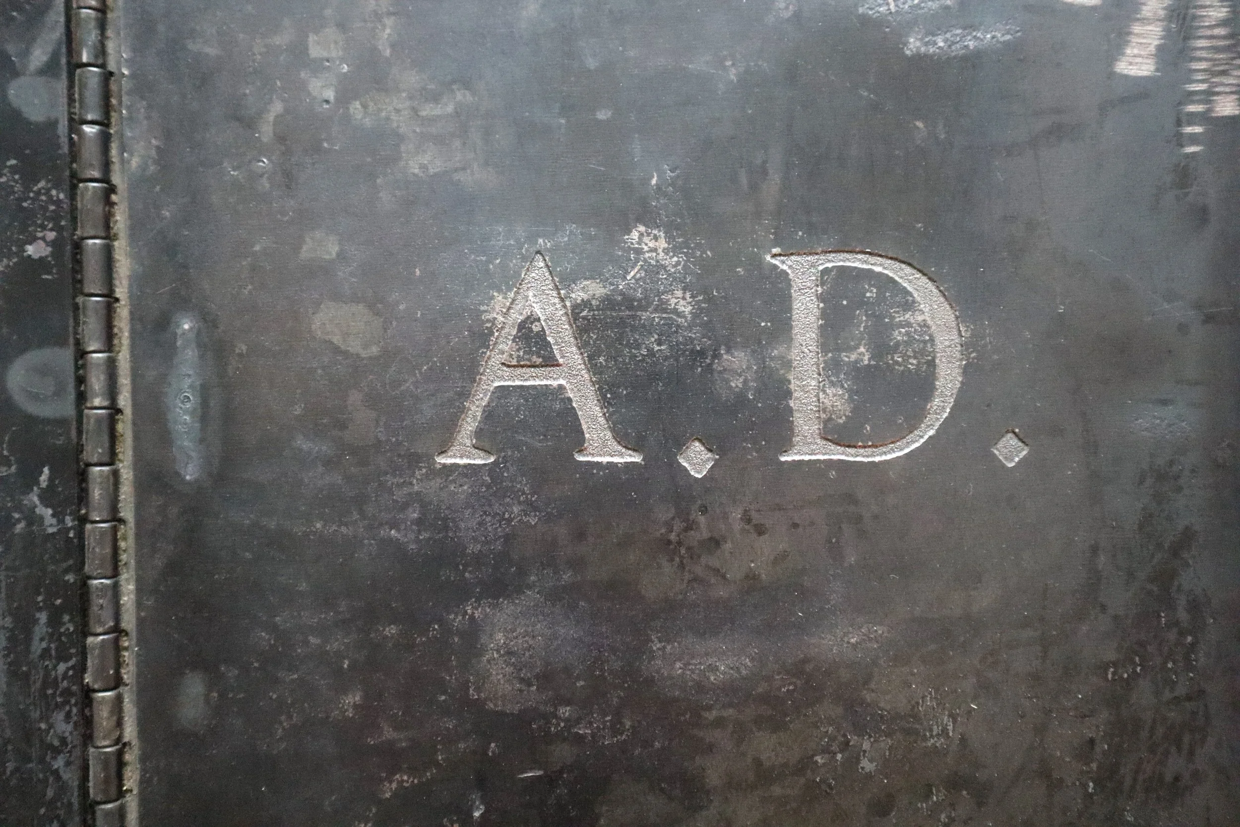 A.D. — Anodized forged steel cover, piano hinge and army blanket.
