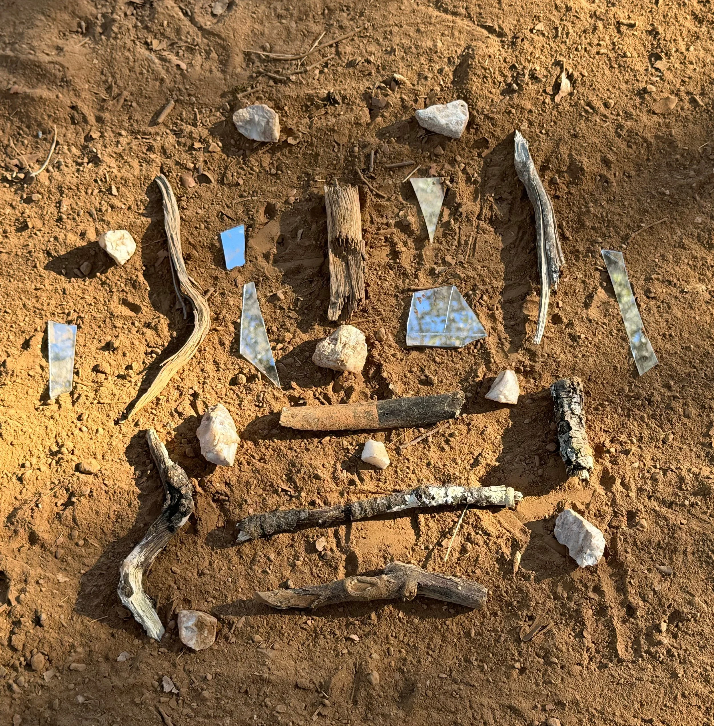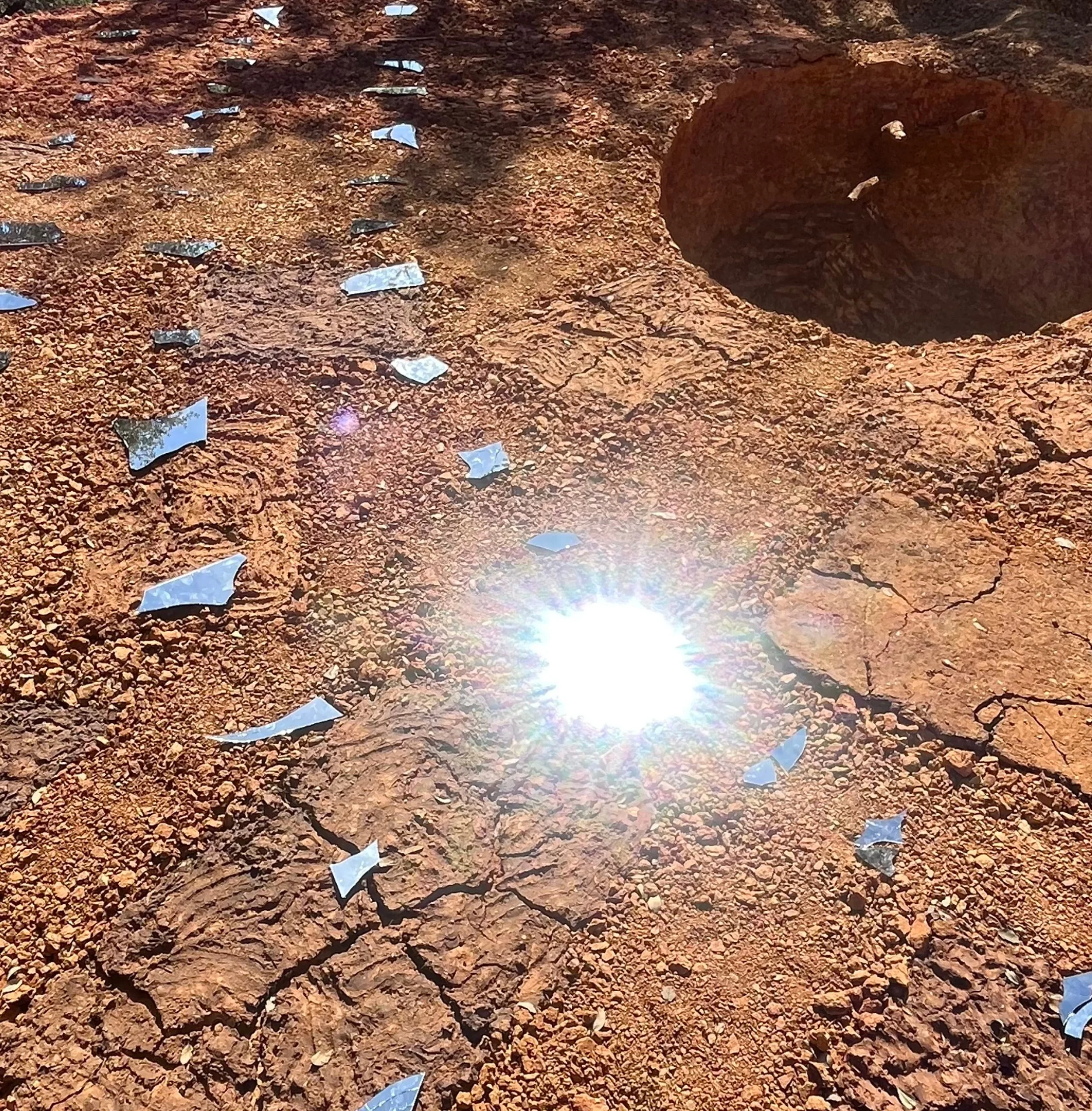Radio the Sun is a body of interdisciplinary works created during a residency in Andalusia, Spain. This multidisciplinary installation explores land and grid mapping systems using mirror shards that draw in and reflect light. Through gestures of placement and removal, the body becomes a conduit for tracing energy, memory, and movement. The resulting film vignettes reveal abstractions of deliberate light use, offering portals into ritualistic acts that document action rather than performance.