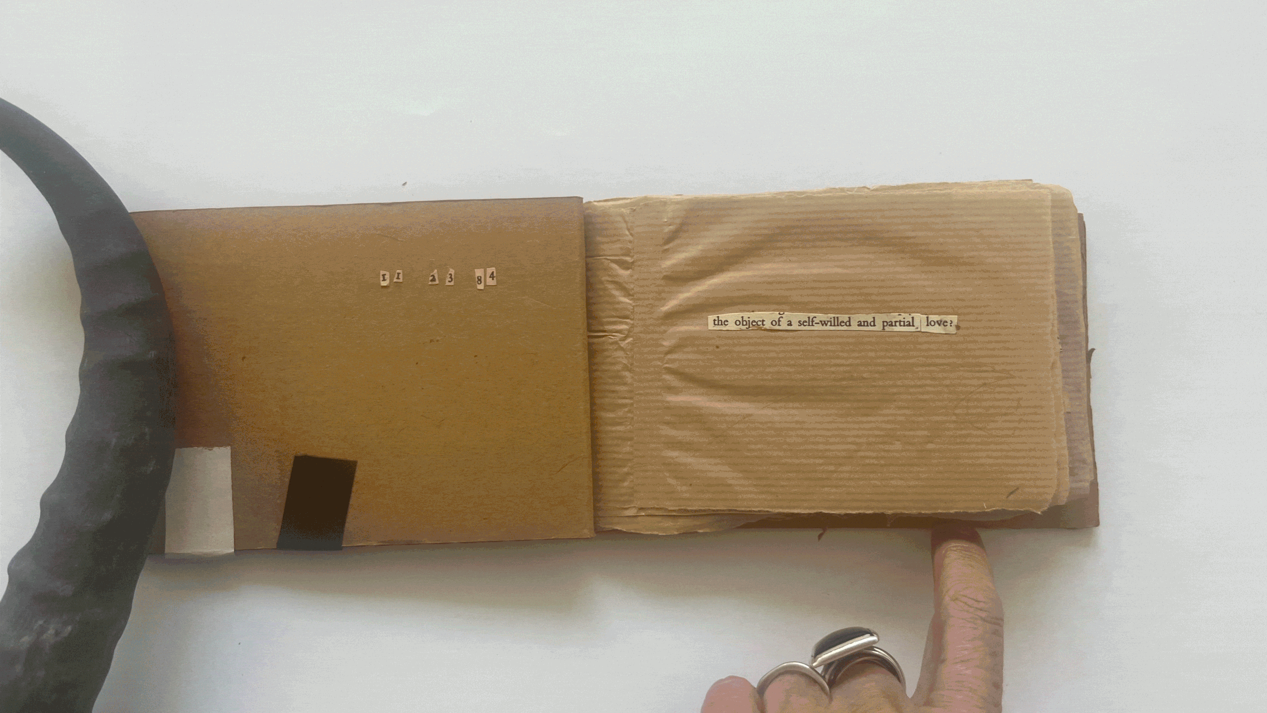 The Birth of Form is one of the earliest small-scale artist books, created using cut-up text methods to reinterpret poetic language. Composed on brown paper with a cardboard cover, the work explores fragmentation and reconstruction. 1984